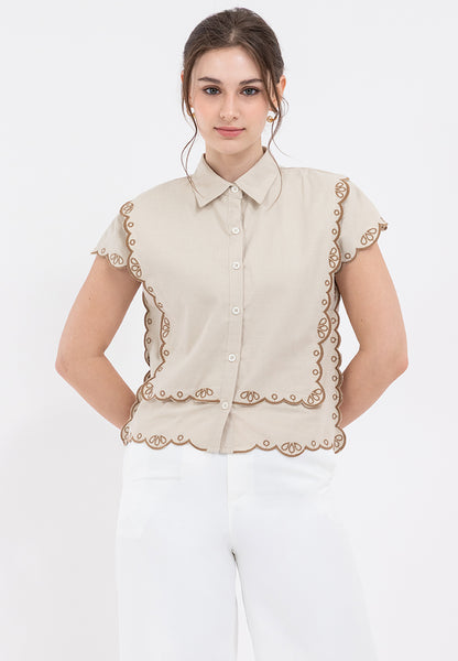 EVADRA  Embro-trimmed Filipiniana Blouse
