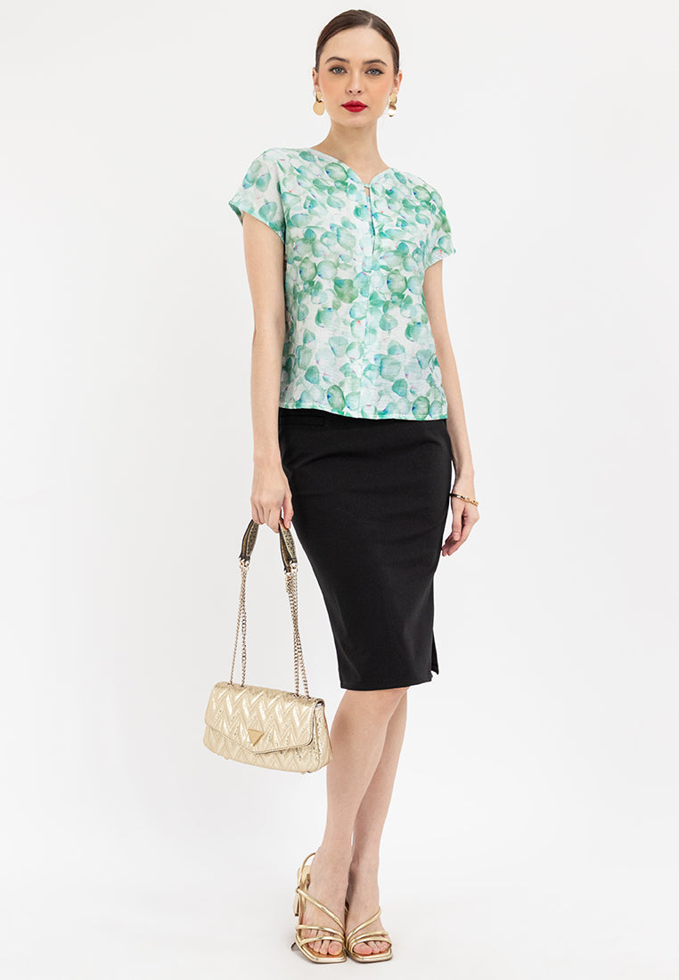 ARIA Printed Front Tab Blouse
